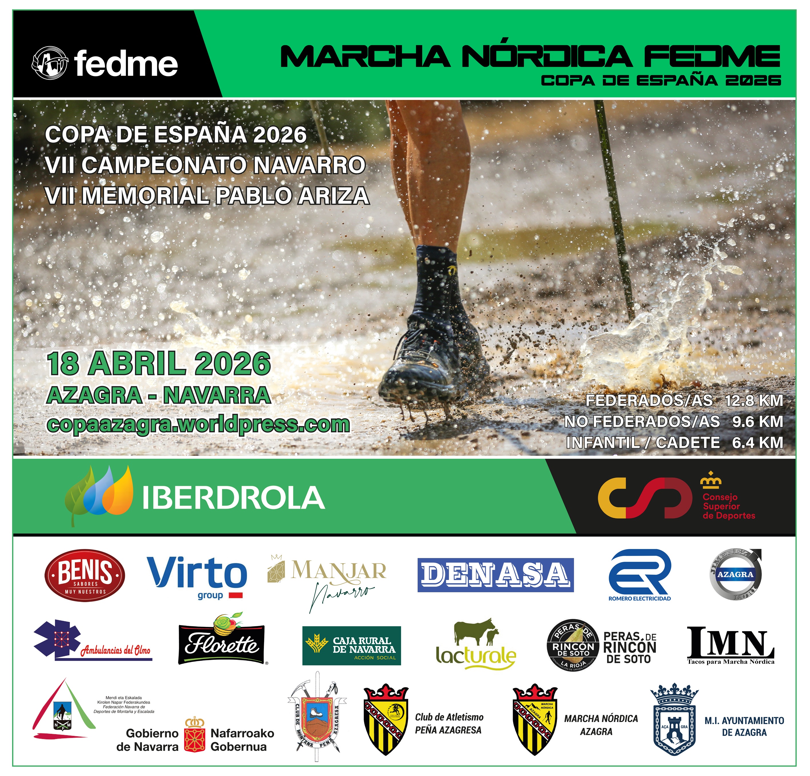 MONTAÑA Hoy CAMPEONATO NAVARRO MARCHA NÓRDICA Escuchar artículo Tu navegador no soporta el elemento de audio. Cargando... Generando audio... Error al cargar el audio. Por favor, intenta de nuevo. Compartir: 🐦 Twitter 📘 Facebook 📱 WhatsApp 📤 Compartir El 18 de abril se celebrará en Azagra el Campeonato Navarro de Marcha Nórdica en el VII Memorial Pablo Ariza. La prueba también será puntuable para la Copa de España FEDME. Más información e inscripciones AQUÍ 📰 Más de Montaña CHARLAS DIVULGATIVAS MONTAÑISMO. 31 DE MARZO KIKO BETELU Hace 1 día CURSOS DE BARRANQUISMO Y ESCALADA Hace 1 día COLONIAS DE VERANO Hace 4 días DECLARACIÓN DE LA FEDERACIÓN NAVARRA DE DEPORTES DE MONTAÑA Y ESCALADA (FNDME) EN RELACIÓN AL MACROPROYECTO DE PLANTA FOTOVOLTAICA EN LA SIERRA DE SARBIL Hace 5 días 🔥 Otras Noticias Destacadas Natación I TRAVESIA DE NATACIÓN INCLUSIVA, EMBALSE DE ALLOZ (CAMPING ARITZALEKU) Hace un momento Natación CAMPUS ACUÁTICO / URETAKO CANPUSA Hace un momento Baloncesto Campus Urbano de Semana Santa Hoy Pelota Navarra supera con claridad a Álava en la tercera jornada del GRAVNI Hoy Esgrima JDN Espada Mixta M13 y M17, Torneo M9, y M20 Espada Masculina-Femenina Hoy Volver a Portada